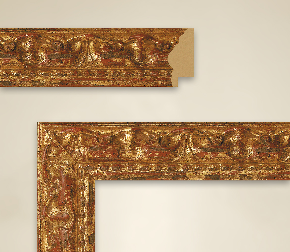 Le cadre photo Lorenza est un cadre en or classique orné d’ornements. Le cadre en bois véritable brille à travers l'application de son jeu de couleurs en or avec des éléments rouges. Et ceci sur toute sa taille, qui fait 49 millimètres de largeur et 20 millimètres de hauteur. Le cadre photo Lorenza agit comme un cadre unique sur le mur ainsi qu’en interaction avec d’autres éléments du même genre - car vous ne pouvez pas avoir assez de cadres dorés pour un amateur d’art. Lorenza s'adaptera à cela et émettra pourtant sa propre personnalité. Immédiatement après la barre d'extrémité étroite au bord extérieur suit une pièce large, qui est pleine d'ornements. Ici, le spectateur peut laisser libre cours à son imagination, qu'il s'agisse d'un Bandelwerk issu du baroque ou d'éléments floraux. Une barre plus étroite suit, montrant les maillons ronds qui se rejoignent avant que Lorenza ne se termine par une barre d'extrémité droite. Sur tous brille l'or brillant, ce qui crée des accents brun rougeâtre pour une ambiance antique.