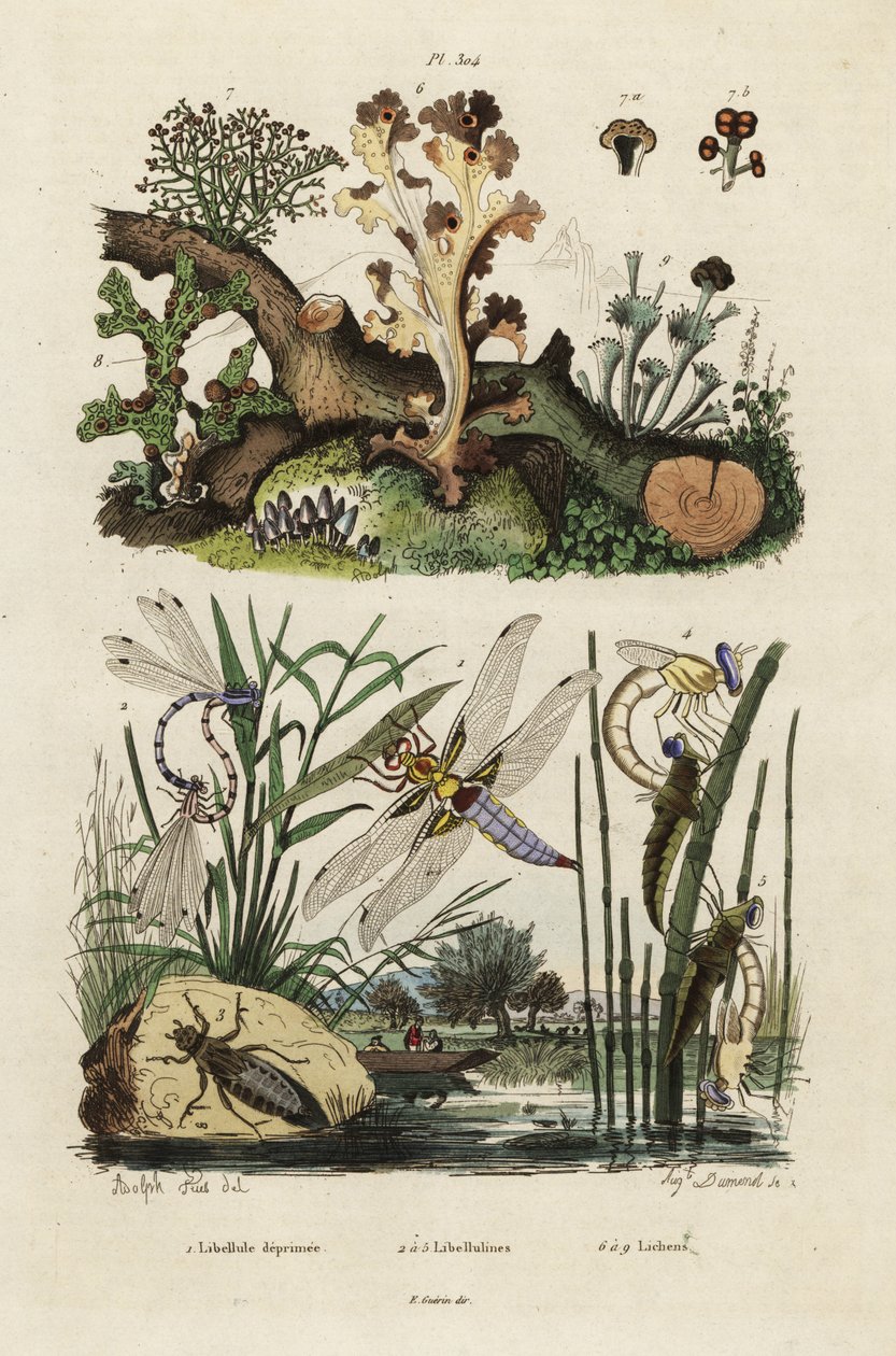 Chasseur, libellule et lichens.,1834-1839 (gravure)(Chaser, skimmer and lichens.,1834-1839 (engraving))Adolph (after) Fries |