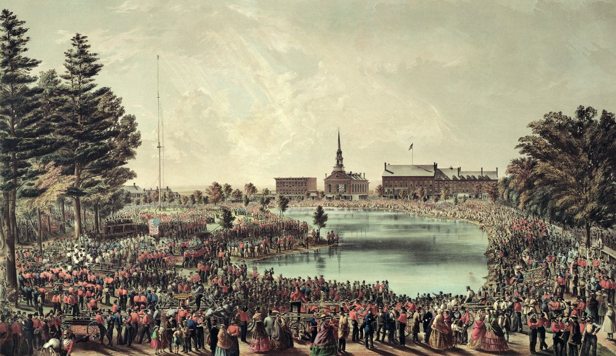 Concours de pompiers, Merrimack Square, Manchester, New Hampshire, 1859(Firemans Muster, Merrimack Square, Manchester, New Hampshire, 1859 )American School |