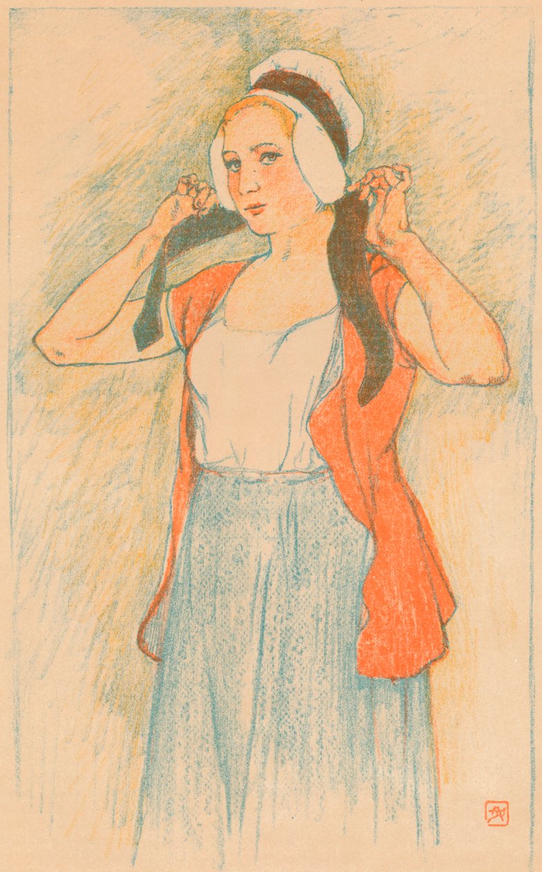 se tenir · femelle · femmes · femme · les gens · chapeau · pays · vêtements · la belgique · couleur · couleur · capot · robe · belge · endroit · siècle · dame · concept · dressage · impression · réglable · une personne · ajustement · publication · 19ème siècle · lithographie · dix-neuvième siècle · lithography · direct gaze · lithograph · portrait · auto-lithograph · studio volume twelve · armand rassenfosse · rassenfosse · armand · The Print Collector/Heritage Images |