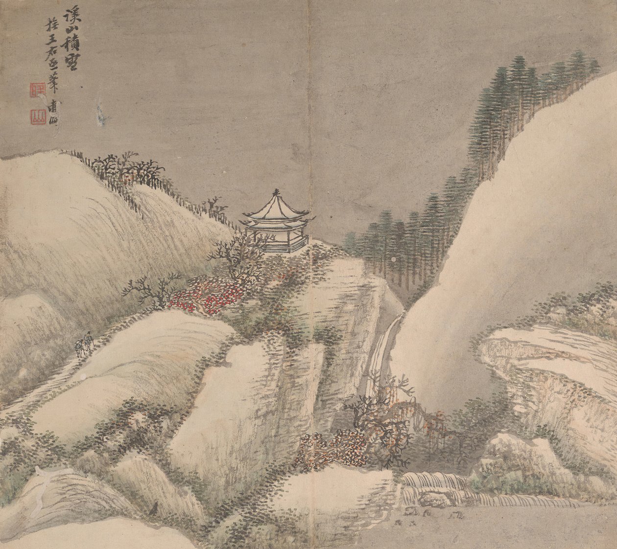 bâtiment · paysage · montagne · montagnes · pays · la chine · chinois · musée · géographie · pavillon · endroit · siècle · couleur · rencontré · noir et blanc · noir et blanc · 18ème siècle · dix-huitième siècle · landscape · heritage art · ink and colour on paper · ink and colour on paper · album of twelve leaves · album of twelve leaves · cao jian · jian · cao · Heritage Art/Heritage Images |