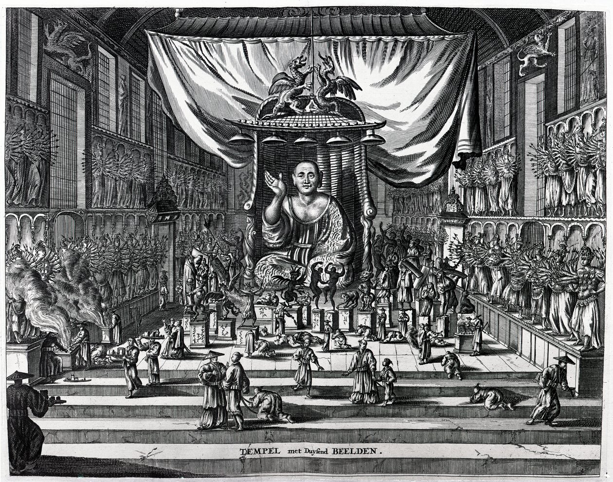 Un temple bouddhiste, illustration de 'Atlas Chinensis' par Arnoldus Montanus, 1671(A Buddhist Temple, an illustration from 'Atlas Chinensis' by Arnoldus Montanus, 1671 )Dutch School |