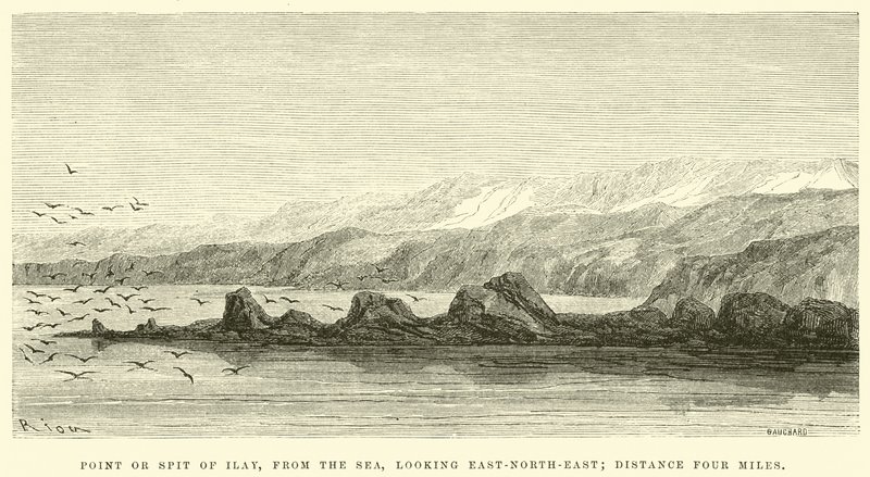 Pointe ou langue de terre d'Ilay, depuis la mer, regardant vers l'est-nord-est; distance quatre miles(Point or spit of Ilay, from the sea, looking East-North-East; distance four miles )Edouard Riou |