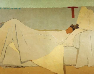 femme · intérieur · à la maison · peinture · la france · sommeil · repos · paix · décoratif · quotidien · salon · pièce vivante · dame · journalier · dans le lit · pièce blanche · weekday · oil on canvas · genre · sleeping woman · vuillard · Édouard 1868-1940 · Fine Art Images/Heritage Images