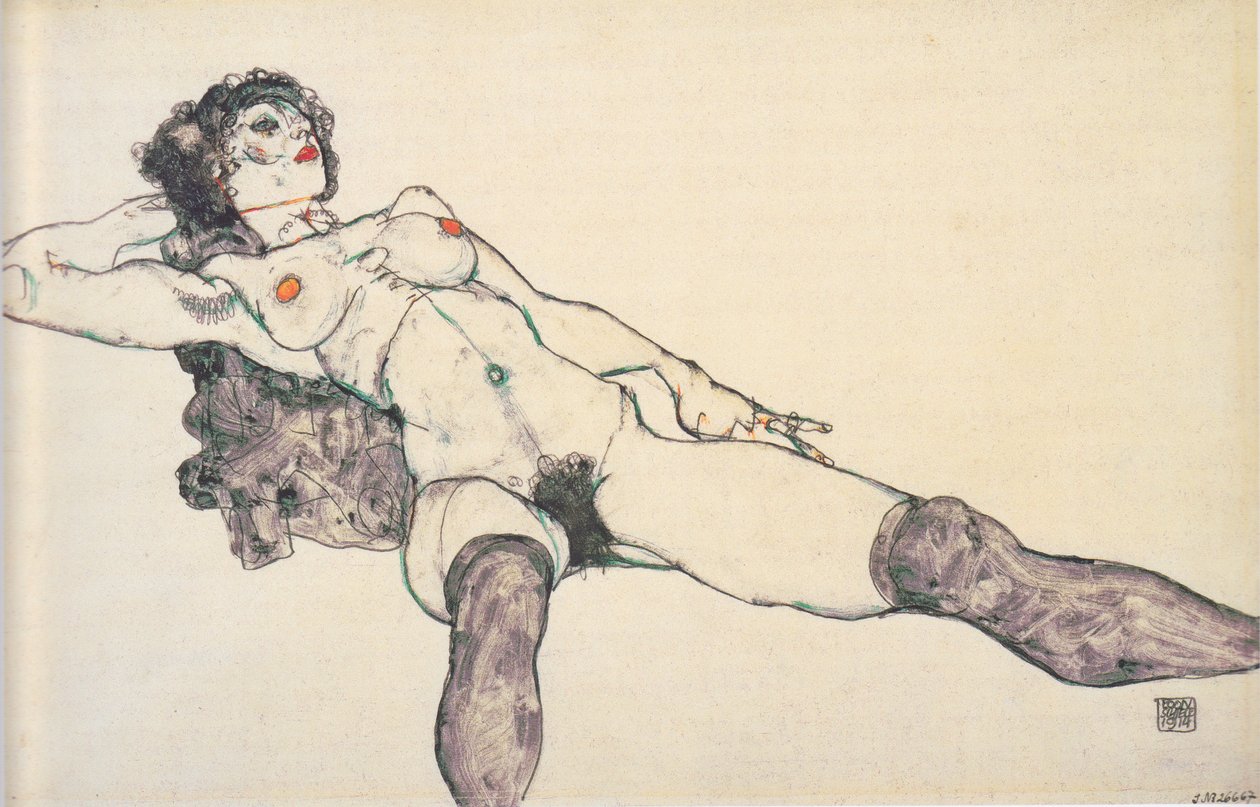 Nu féminin couché avec jambes écartées(Liegender weiblicher Akt mit gespreizten Beinen)Egon Schiele |