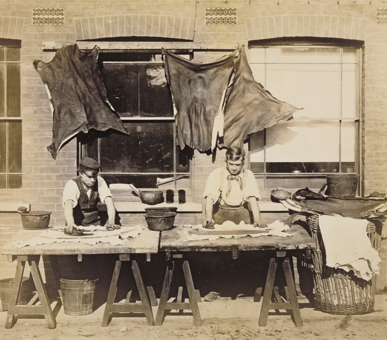 Teinture du cuir pour la fabrication de gants, Bevington and Sons, 1861-62(Leather Dyeing for Making Gloves, Bevington and Sons, 1861-62 (sepia photo) (see also 232992))English Photographer |