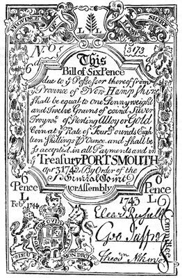 Monnaie de papier de la Nouvelle-Angleterre (gravure)(New England paper money (engraving))English School |