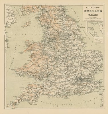 Carte ferroviaire de l'Angleterre et du Pays de Galles(Railway Map of England and Wales )English School |