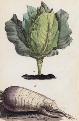 Chou et légume-racine (lithographie couleur)(Cabbage and root vegetable (colour litho))European School |