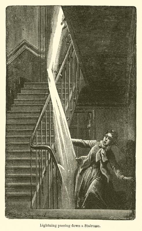 Foudre descendant un escalier (gravure)(Lightning passing down a Staircase (engraving))European School |