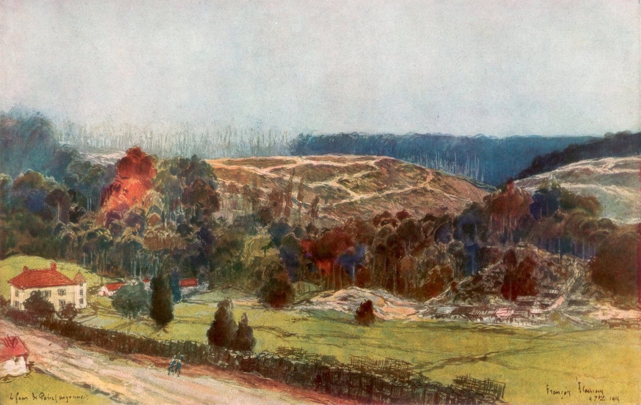 nature · forêt · arbre · campagne · colline · usine · arts · peinture · pays · français · la france · géographie · couleur · couleur · guerre · endroit · siècle · première guerre mondiale · concept · première guerre mondiale · guerre mondiale une · les années 10 · 20ème siècle · landscape · francois flameng · flameng · francois · The Print Collector/Heritage Images |