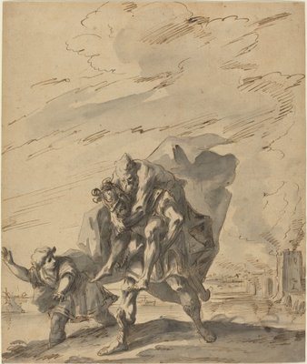 (Aeneas Carrying Anchises from Burning Troy, c.1733 (pen and ink))Gasparo Diziani |