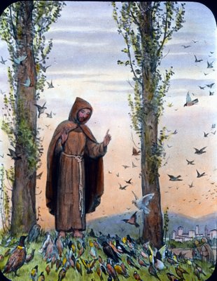 Saint François prêchant aux oiseaux (lithographie couleur)(St Francis preaching to the birds (colour litho))German School |