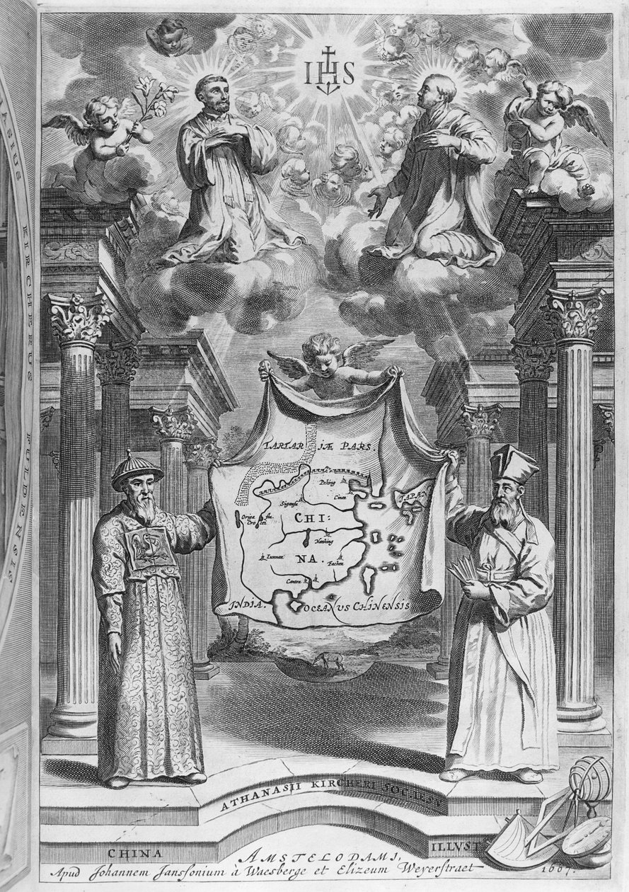 Frontispice de 'China Monumentis' par Athanasius Kircher, 1667(Frontispiece to 'China Monumentis' by Athanasius Kircher, 1667 )German School |