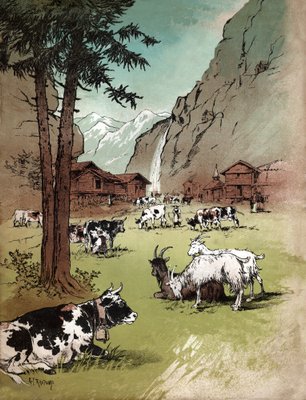 Ferme et paysage dans les Alpes suisses, vers 1910 (illustration)(Farm and landscape in the Swiss Alps, circa 1910 (illustration))Gustave Fraipont |