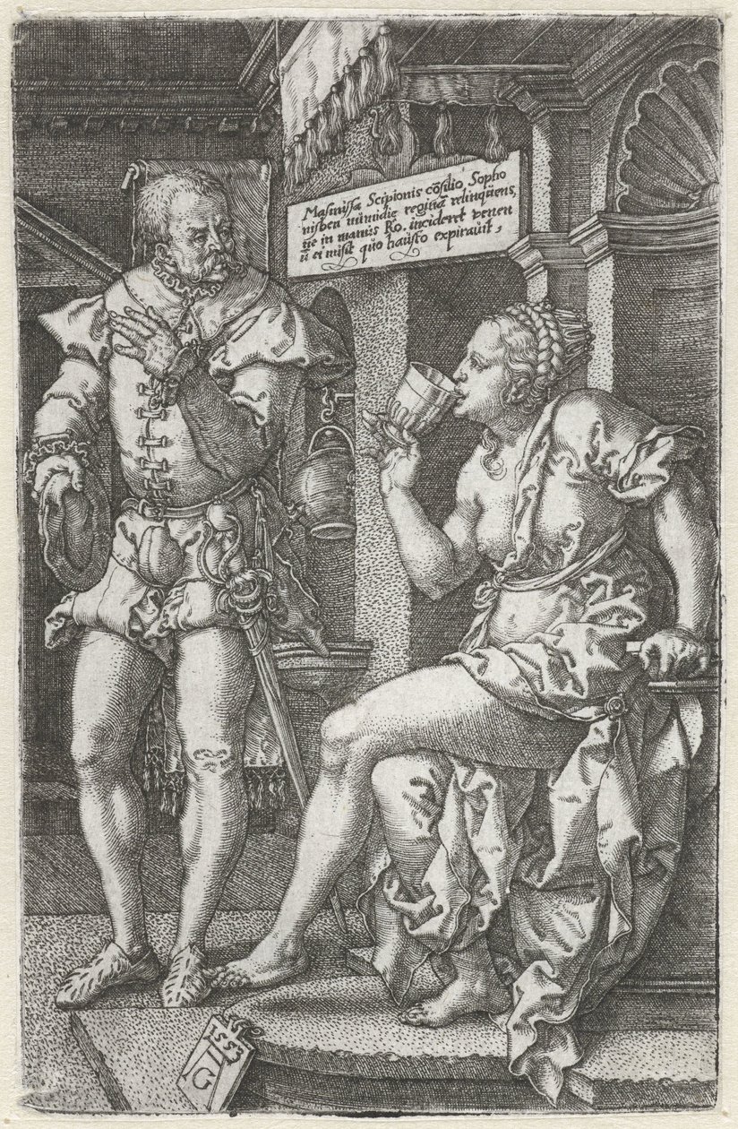 Sophonisba boit du poison(Sophonisba drinkt vergif)Heinrich Aldegrever(print maker),Heinrich Aldegrever(after own design by) |