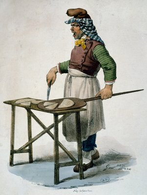 Pizzaiolo, vers 1820, gravure, Italie(Pizza maker, ca 1820, engraving, Italy)Italian School |