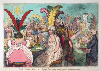 La soirée de Lady Godina, ou Peeping-Tom espionnant Pope-Joan, 1796(Lady Godina's Rout,-or-Peeping-Tom Spying out Pope-Joan, 1796. )James Gillray |