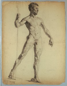 Homme nu debout tenant un bâton avec les bras levés(Staand mannelijk naakt, in de geheven armen een stok houdend)Jan Willem Pieneman(draughtsman) |
