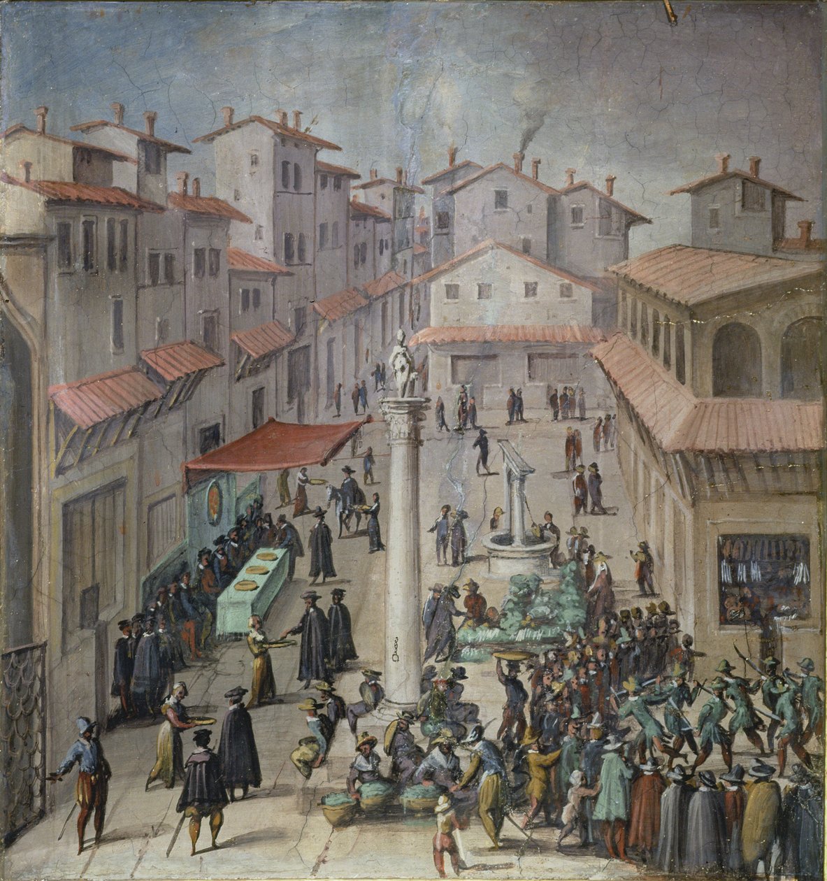 Piazza del Mercato Vecchio, Florence, 1555(Piazza del Mercato Vecchio, Florence, 1555 )Jan van der Straet |