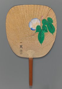 Éventail non monté : Oiseau plongeant sur un bambou couvert de neige, vers 1700-60(Unmounted fan: Bird diving onto snow-covered bamboo, c.1700-60 (gold & wc on paper))Japanese School |