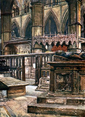 Chapelle St Edmund, montrant le tombeau de la duchesse de Suffolk, mère de Lady Jane Grey (lithographie couleur)(St Edmund's Chapel, showing the Tomb of the Duchess of Suffolk, Lady Jane Grey's mother (colour litho))John Fulleylove |