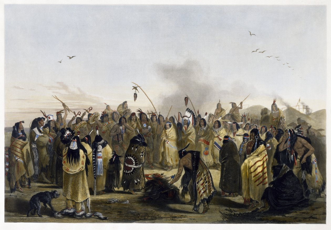 Danse du scalp des Minitarres, 1843-1844(Scalp Dance of the Minitarres, 1843-1844 (aquatint))Karl Bodmer |