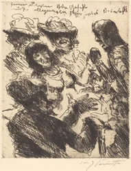 femelle · femmes · femme · les gens · mâle · homme · hommes · allemand · arts · pays · type · washington · drame · endroit · siècle · schéma · galerie · littérature · noir et blanc · noir et blanc · les années 20 · 20ème siècle · lovis corinth · corinth · lovis · art centre · heritage art · print · etching in black on laid paper · wallenstein's camp wallensteins lager · Heritage Art/Heritage Images