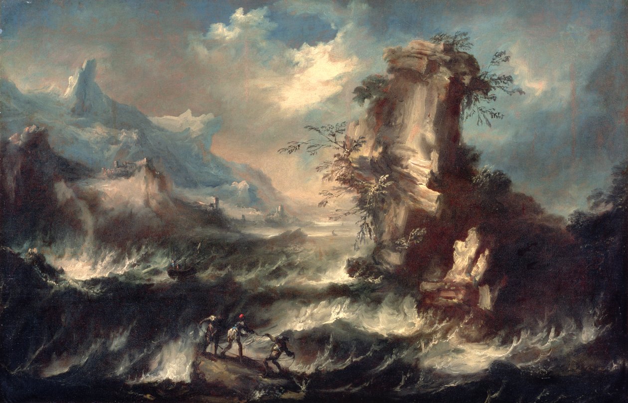 Paysage marin italien avec rochers et personnages(Italian Seascape with Rocks and Figures )Marco Ricci |