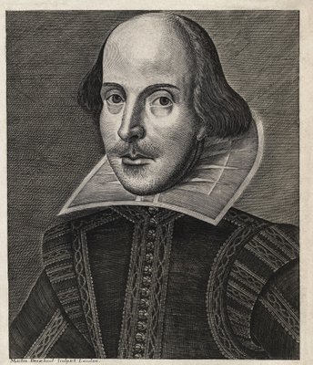 William Shakespeare de la page de titre de 'Les comédies, histoires et tragédies de M. William Shakespeare' publié en 1623 (gravure)(William Shakespeare from the title page of 'Mr William Shakespeare's comedies, histories, & tragedies' published in 1623 (engraving))Martin Droeshout |
