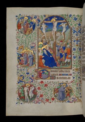 Heures de Charles le Noble, Roi de Navarre 1361-1425 : fol. 185r, Crucifixion, vers 1405(Hours of Charles the Noble, King of Navarre 1361-1425: fol. 185r, Crucifixion, c. 1405. )Master of the Brussels Initials and Associates |