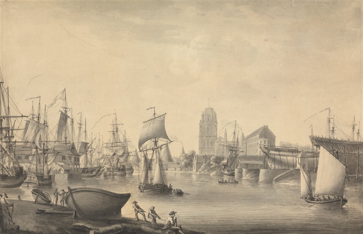 Non daté. · Gray wash and pen and black ink on medium, slightly textured, cream laid paper