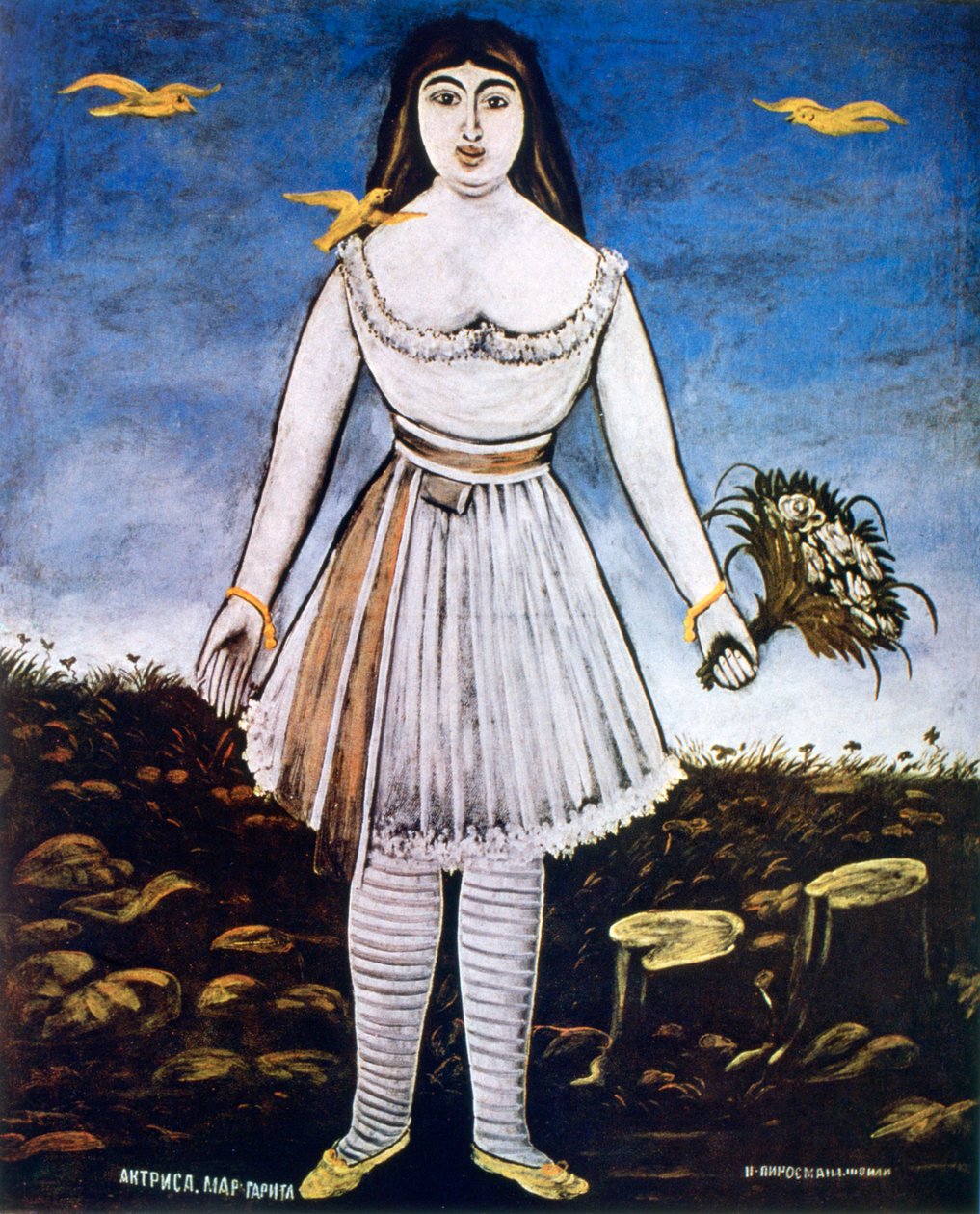 se tenir · femelle · possession · femmes · femme · les gens · arts · peinture · oiseau · oiseaux · divertissement · blanc · couleur · couleur · la géorgie · robe · siècle · bouquet · dame · géorgien · action · acteur · actrice · groupe de fleurs · thespian · les années 1900 · 20ème siècle · art media · primitivist · portrait · niko pirosmanishvili · pirosmanishvili · niko · pirosmani · niko · niko pirosmani · Art Media/Heritage Images