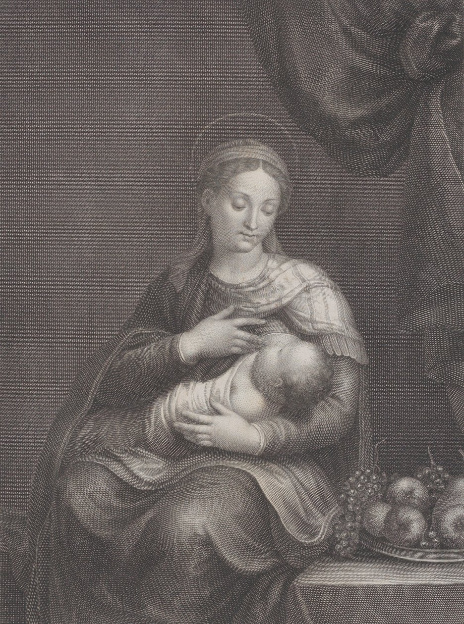 italien · femelle · femmes · femme · les gens · enfant · enfants · famille · religieux · fruit · bébé · bébés · pays · religion · vierge · musée · christianisme · le christ · jésus · jésus le christ · endroit · siècle · vierge mary · nourrisson · breastfeeding · allaitement au sein · la vie de famille · rencontré · 19ème siècle · noir et blanc · noir et blanc · madonna · fécondité · madonna et enfant · dix-neuvième siècle · vierge et enfant · raphael morghen · morghen · raphael · rafaello morghen · heritage art · third state of three · engraving · engraving · benvenuto tisi da garofalo · garofalo · benvenuto tisi da · il garofalo · benvento garofolo · garofolo · benvento · benvenuto da garafano · garafano · benvenuto da · Heritage Art/Heritage Images |