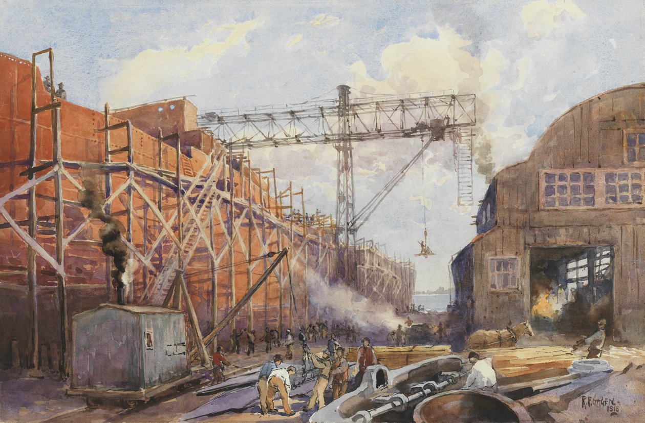 Chantier naval Polson Iron Work, navire de guerre Hydra en construction, 1918(Polson Iron Work Yard, Ship War Hydra on Stocks, 1918)Robert Ford Gagen |