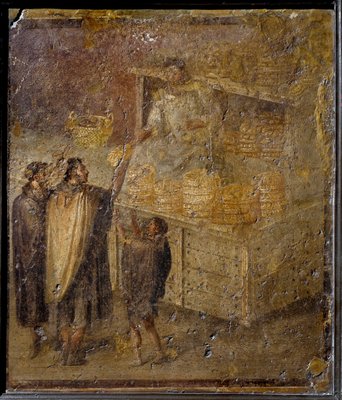 Scène représentant un boulanger vendant du pain. (Fresque, 1er siècle)(Scene depicting a baker selling bread. (Fresco,1st century))Roman |