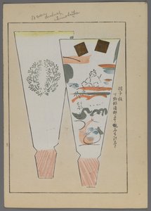 Jouets japonais, raquettes de hanetsuki avec femme en kimono, de Unai no tomo (Les amis d'un enfant) par Shimizu Seifu, 1891-1923(Japanese toys, from Unai no tomo (A Childs Friends) by Shimizu Seifu, 1891-1923. Hanetsuki paddles with kimono-clad woman.)Shimizu Seifu |