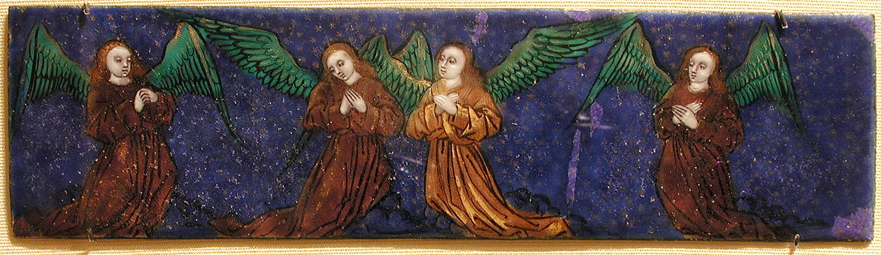 bleu · fin vers le haut · religieux · pays · français · la france · religion · panoramique · métal · vert · musée · couleur · brun · décoration · décoratif · peint · cuivre · médiéval · ange · agenouillement · endroit · siècle · image · objet façonné · plaque · à ailes · plan rapproché · objet façonné · arts décoratifs · couleur · rencontré · émail · médiéval · Âges moyens · 16ème siècle · seizième siècle · object · unknown · enamelled · bassetaille · letterbox format · heritage art · painted enamel · copper · Heritage Art/Heritage Images |