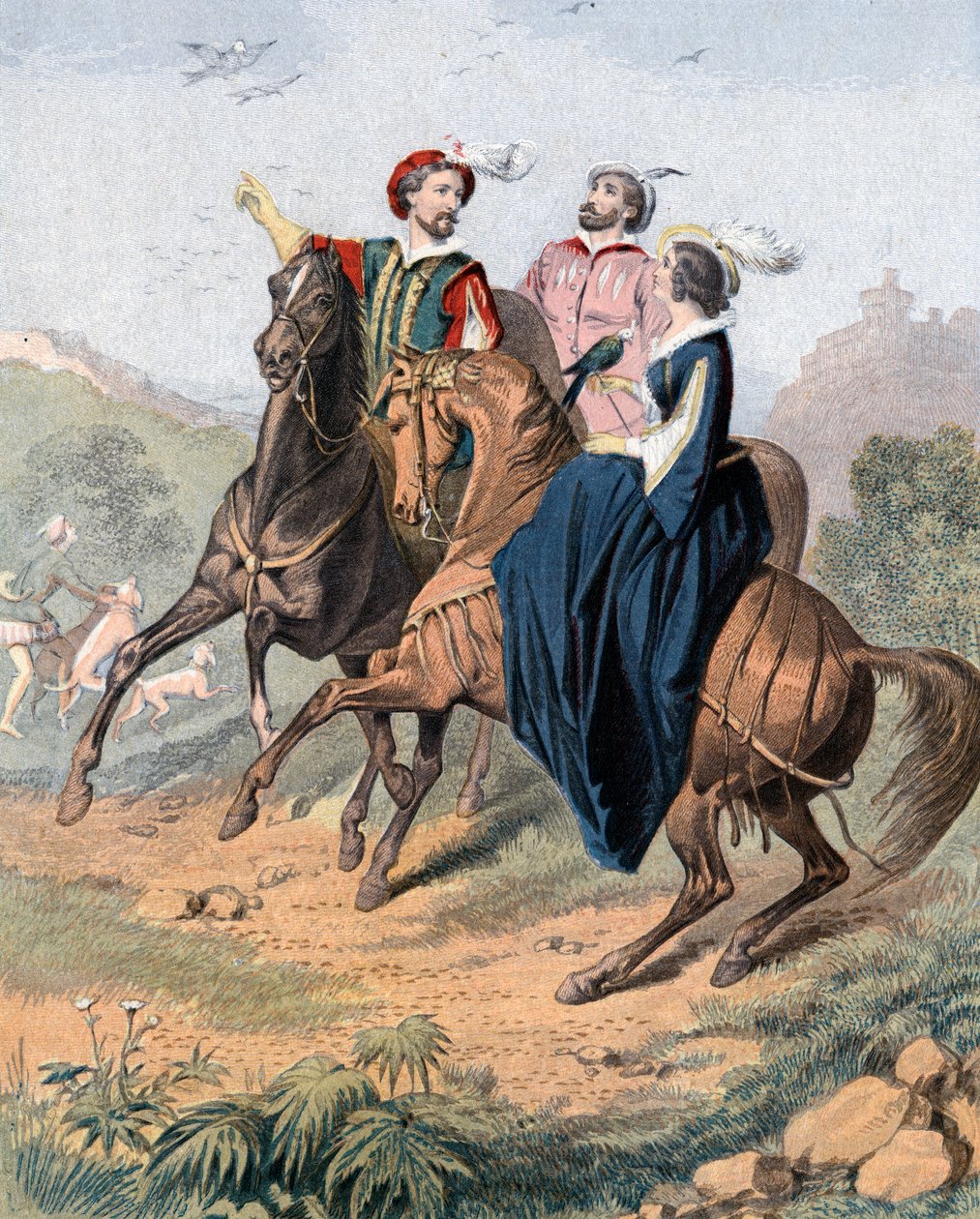 animal · femelle · femmes · femme · les gens · mâle · sport · homme · hommes · animaux · chevaux · cheval · équitation · cavalier · mode · oiseau · oiseaux · pays · pointage · type · britannique · anglais · couleur · couleur · chasse · robe · endroit · siècle · la grande-bretagne · sportif · dame · tudor · faucon · faucon · sportswoman · 19ème siècle · falconry · 16ème siècle · dix-neuvième siècle · seizième siècle · ann ronan pictures · chromolithograph · unknown · Ann Ronan Picture Library/Heritage-Images |
