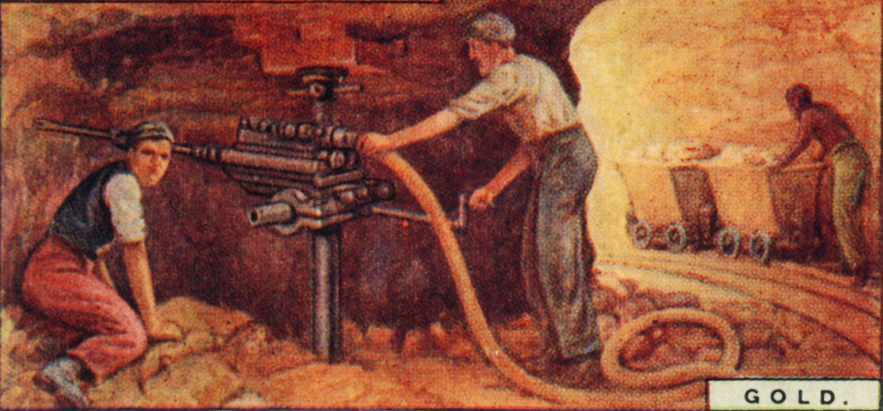 les gens · mâle · homme · hommes · industrie · métal · type · couleur · couleur · machine · exploitation · travail · machines · texte · illustration · siècle · mine · forage · goldmine · les années 20 · 20ème siècle · unknown · cigarette card · john player sons · player · john sons · The Print Collector/Heritage Images |