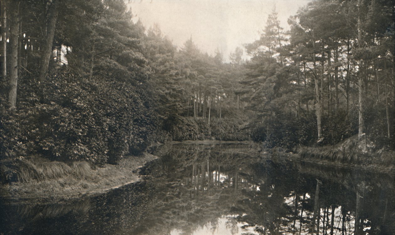 voyage · nature · forêt · arbre · vacances · vacances · usine · réflexion · vallée · géographie · souvenir · endroit · siècle · souvenir · dorset · reflété · monochrome · côte du sud · noir et blanc · noir et blanc · edwardian · les années 1900 · les années 10 · 20ème siècle · poole · tourisme · photograph · unknown · bishop · chine · branksome · j h bishop · j h · branksome chine · branksome lake · The Print Collector/Heritage Images |