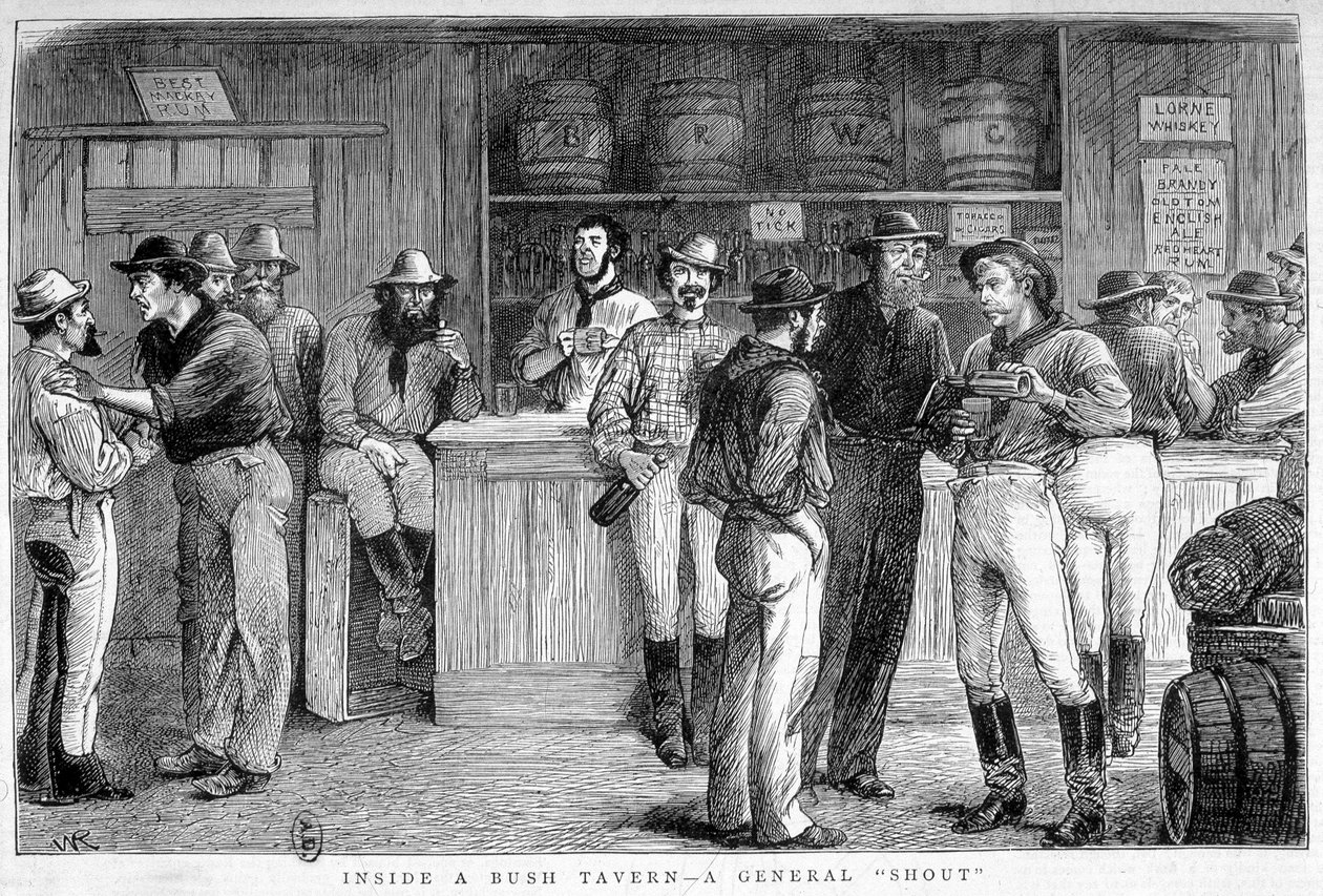 Taverne de brousse en Australie, vers 1880(Bush tavern in Australia, circa 1880.)Unknown artist |