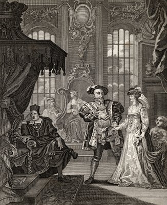 Henri VIII et Anne Boleyn, gravé par T. Cooke, extrait de "The Works of Hogarth", publié en 1833 (lithographie).(Henry VIII and Anne Boleyn, engraved by T. Cooke, from 'The Works of Hogarth', published 1833 (litho))William (after) Hogarth |