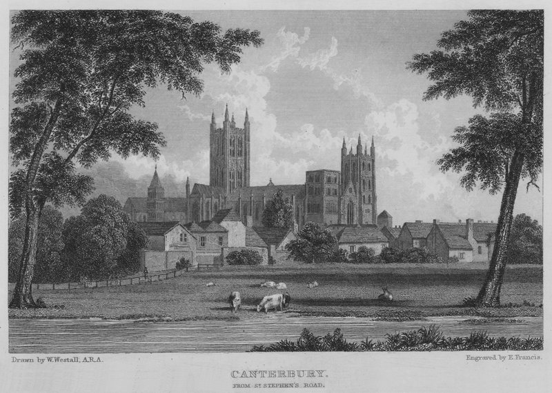 Canterbury, depuis St Stephen's Road(Canterbury, from St Stephen's Road (engraving))William (after) Westall |