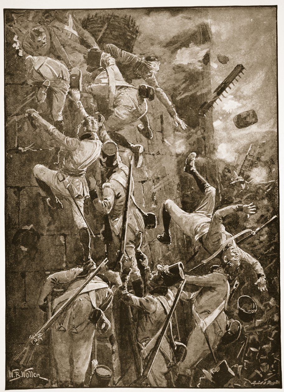 La 5e division prenant d'assaut les remparts de San Vincente, illustration de 'Battles of the Nineteenth Century' par Archibald Forbes, G.A. Henty et Major Arthur Griffiths(The 5th Division storming by escalade the ramparts of San Vincente, illustration from 'Battles of the Nineteenth Century' by Archibald Forbes, G.A. Henty and Major Arthur Griffiths )William Barnes Wollen |