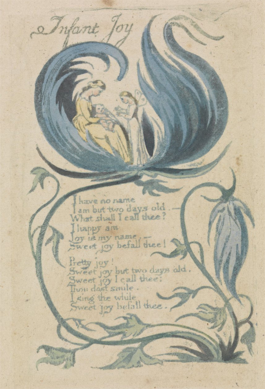 Joie infantile, planche 27 des Chants d'Innocence, 1789(Infant Joy, plate 27 from Songs of Innocence, 1789 (hand-coloured relief etching with wc on paper))William Blake |