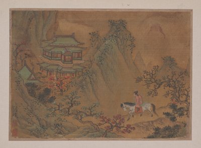 Paysage avec homme à cheval (miniature de l'album de onze peintures ; encre et couleur sur soie)(Landscape with Man on Horseback (miniature from album of eleven paintings; ink and color on silk))Yen Liu |